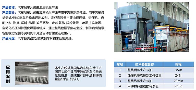 汽車剎車片成形液壓機生產(chǎn)線